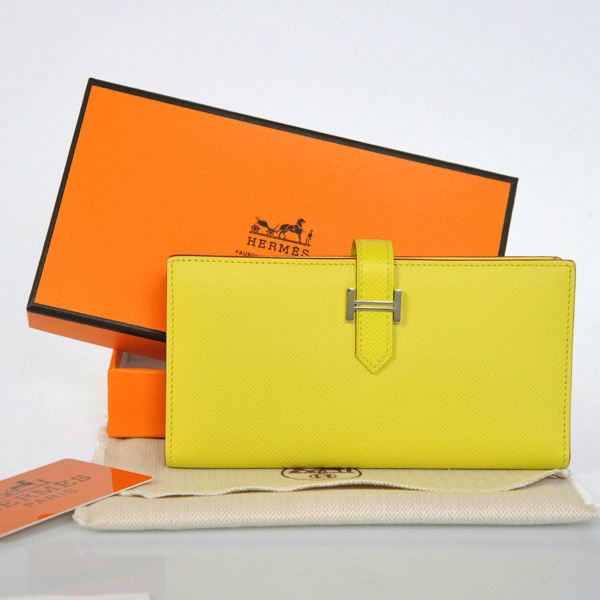 - Hermes 2 flod original leather wallet in Lemon Yellow