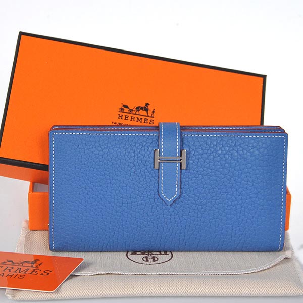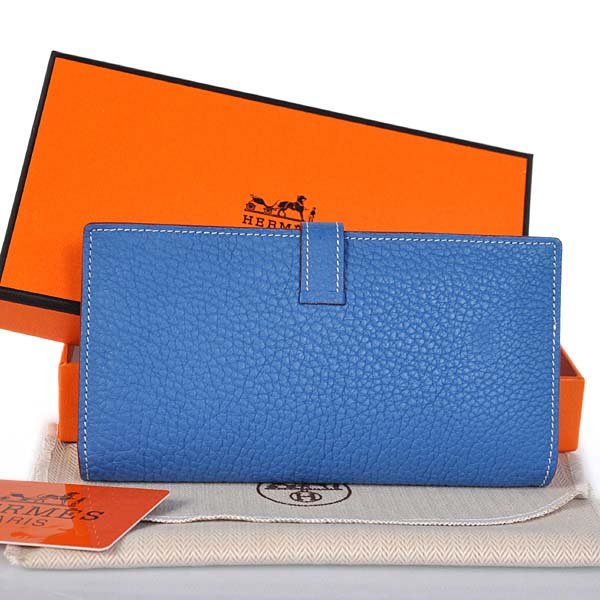 - Hermes 2 flod original leather wallet in Turkey Blue