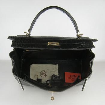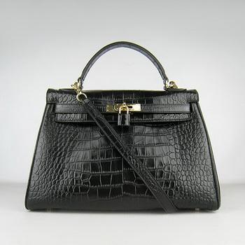 - Hermes 32CM Black Crocodile Stripe(gold)