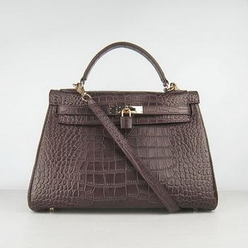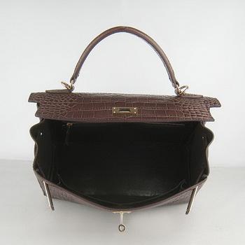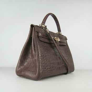 Hermes 32CM Dark Coffee Crocodile Stripe(gold)