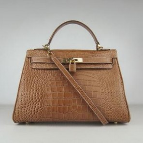 Hermes 32CM Light Coffee Crocodile Stripe(gold)