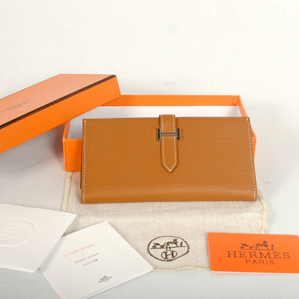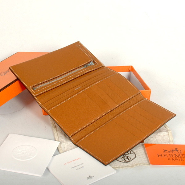 Hermes 3 flod original leather wallet in Camel Come with Hermes authenticity card, Hermes tags,Hermes wallet dust bag, Hermes wallet box and Hermes care booklet.