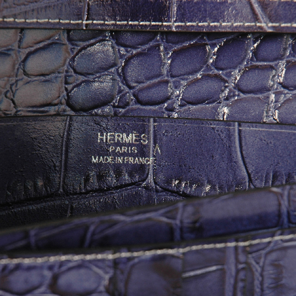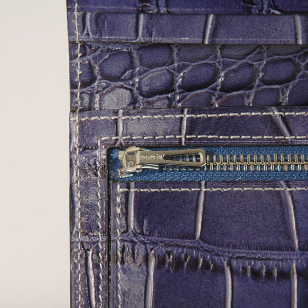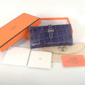 Hermes 3 fold wallet Crocodile stripes leather in Blue Come with Hermes authenticity card, Hermes tags,Hermes wallet dust bag, Hermes wallet box and Hermes care booklet.