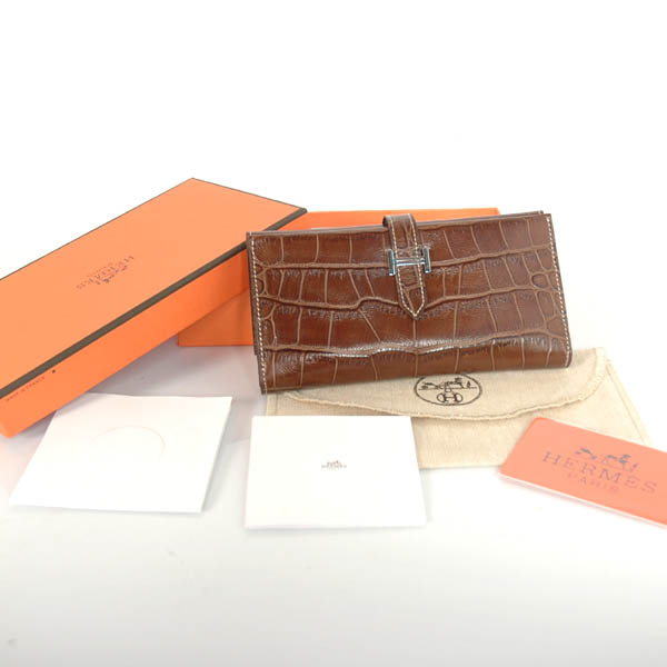 Hermes 3 fold wallet Crocodile stripes leather in Khaki Come with Hermes authenticity card, Hermes tags,Hermes wallet dust bag, Hermes wallet box and Hermes care booklet