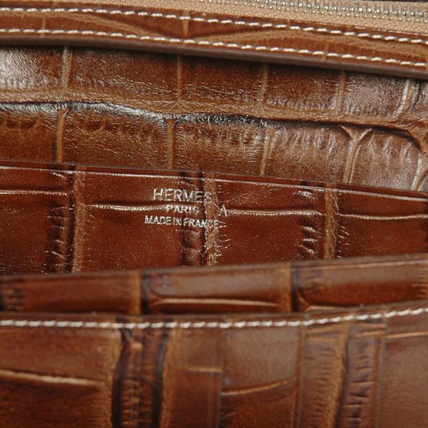 - Hermes 3 fold wallet Crocodile stripes leather in Khaki