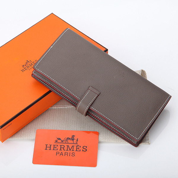 Hermes Bearn Japonaise Bi-Fold Wallet Original Saffiano Leather A208 Dark Gray