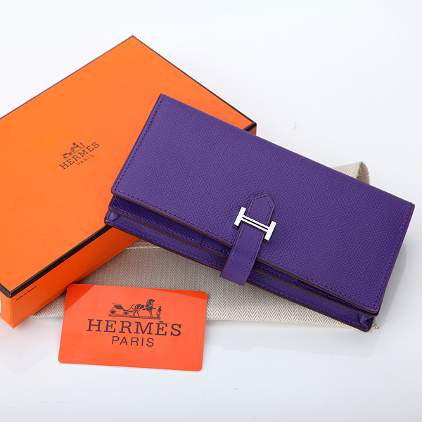 Hermes Bearn Japonaise Bi-Fold Wallet Original Saffiano Leather A208 Purple