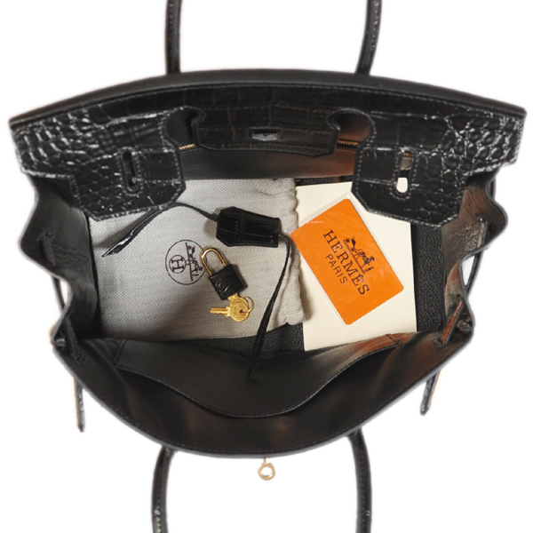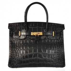 - Hermes Birkin 30CM Crocodile stripes leather in Black with Gold hardware