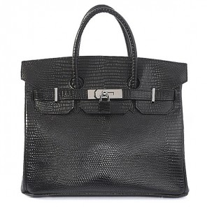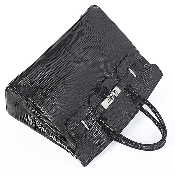 Hermes Birkin 30CM Tote Bags Black Lizard Leather Silver hardware