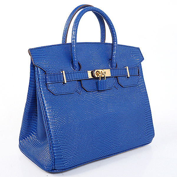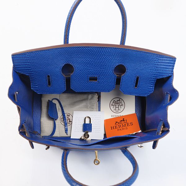 Hermes Birkin 30CM Tote Bags Blue Lizard Leather Gold hardware