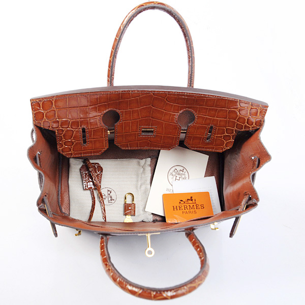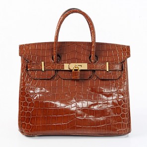 Hermes Birkin 30CM Tote Bags Dark Coffee Crocodile Leather Gold hardware
