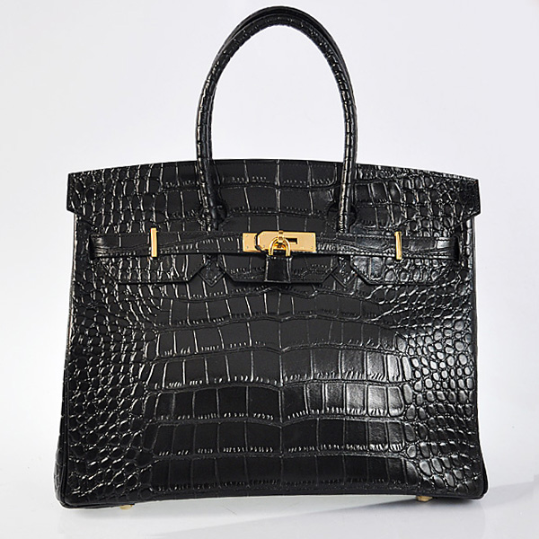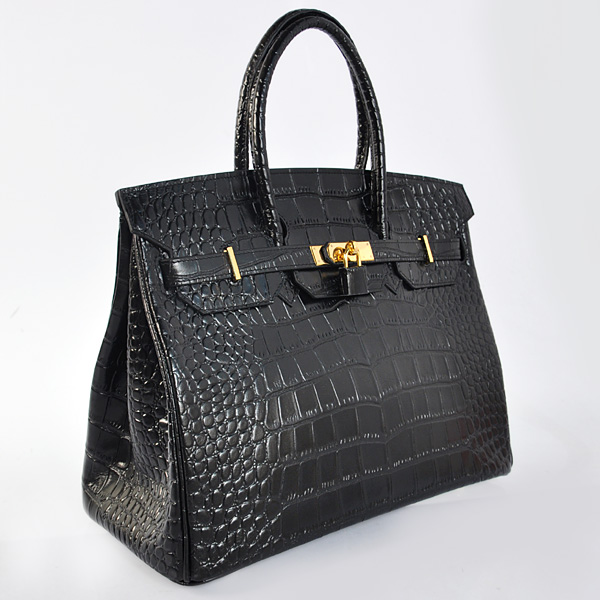 - Hermes Birkin 35CM Black Crocodile stripes leather(Gold)