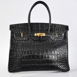 Hermes Birkin 35CM Black Crocodile stripes leather(Gold)