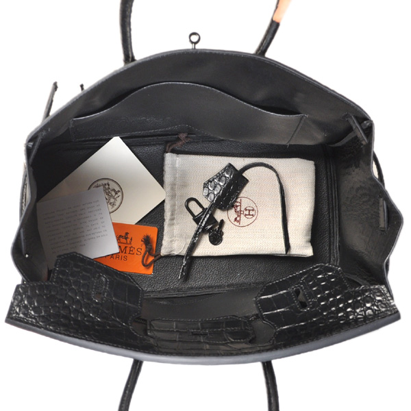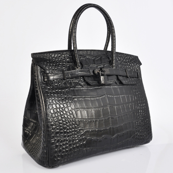 - Hermes Birkin 35CM Crocodile stripes leather in Black with Black hardware