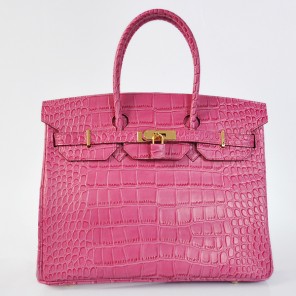 - Hermes Birkin 35CM Crocodile stripes leather in Peach with Silver hardware