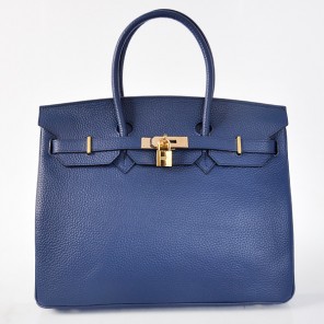Hermes Birkin 35CM Dark Blue clemence leather(Gold)