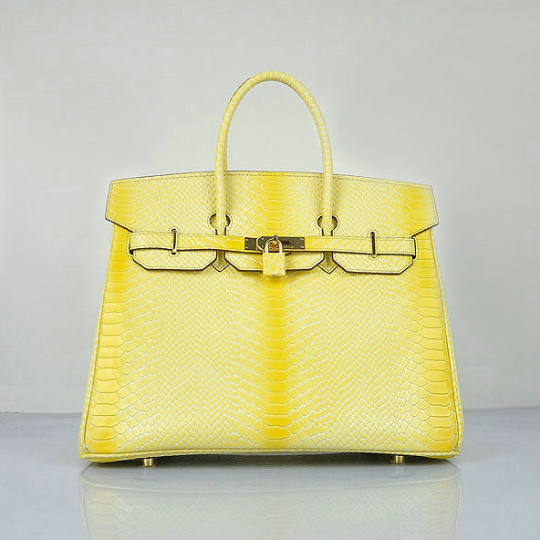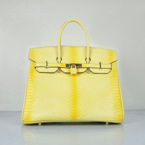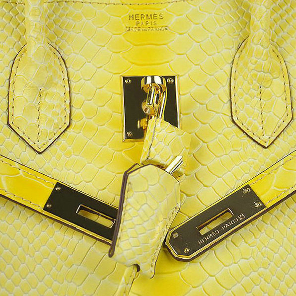 Hermes Birkin 35CM Lemon Snake Leather Tote Bag Gold