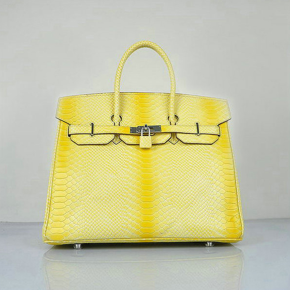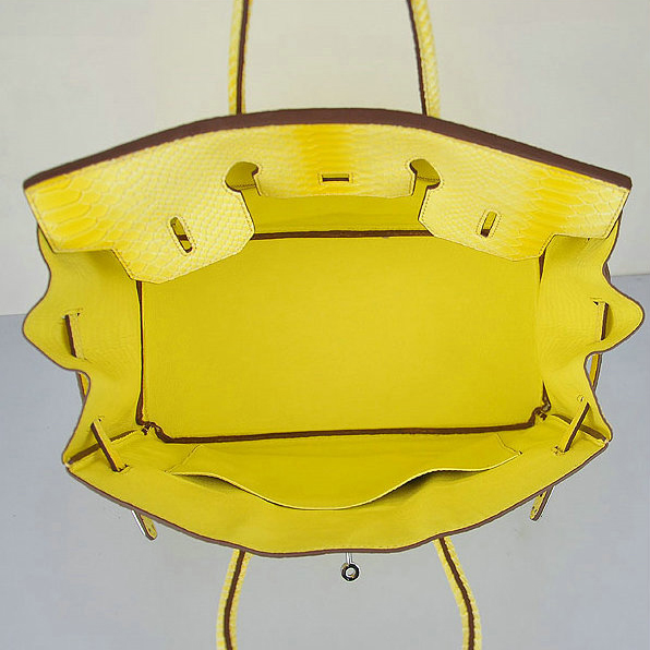 Hermes Birkin 35CM Lemon Snake Leather Tote Bag Silver
