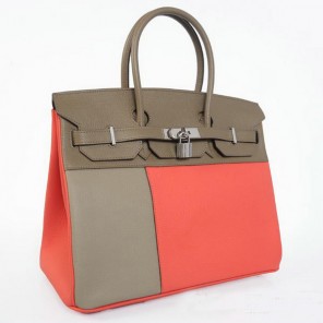 Hermes Birkin 35CM Light Red&Grey Clafskin Leather Tote Bag Silver