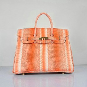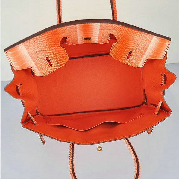 Hermes Birkin 35CM Orange Snake Leather Tote Bag Gold