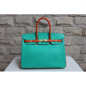 Hermes Birkin 35CM Ostrich leather Gold hardware H35 Green&Orange