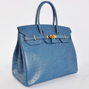 Hermes Birkin 35CM Ostrich stripes leather in Blue with Gold hardware