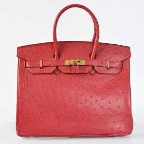 - Hermes Birkin 35CM Ostrich stripes leather in Flame with Gold hardware