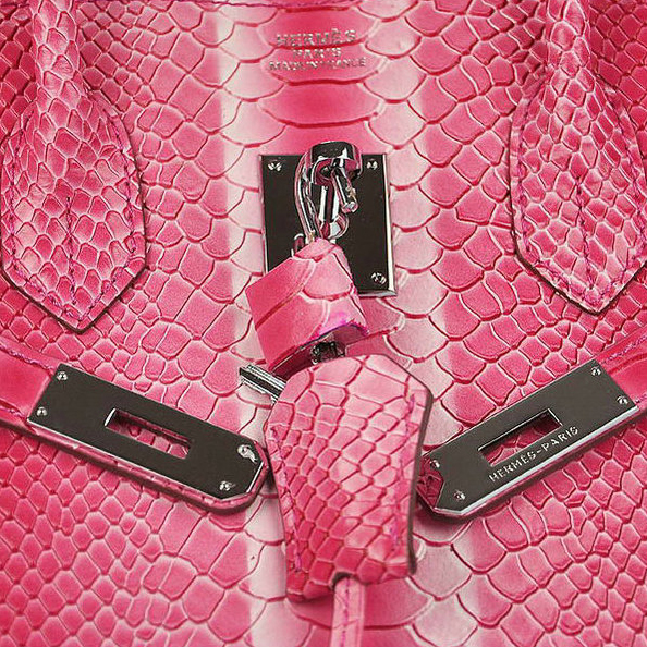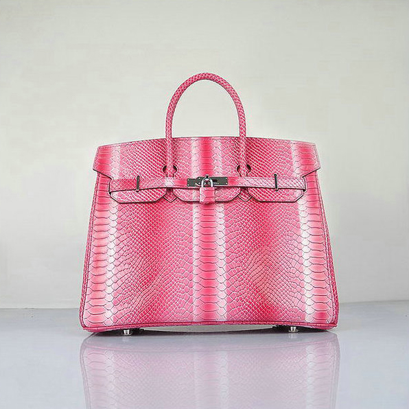 Hermes Birkin 35CM Peach Snake Leather Tote Bag Silver