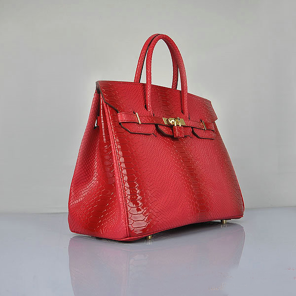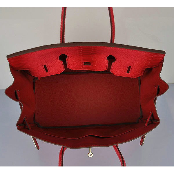 Hermes Birkin 35CM Red Snake Leather Tote Bag Gold