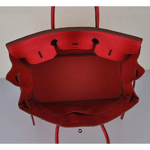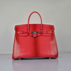 Hermes Birkin 35CM Red Snake Leather Tote Bag Silver