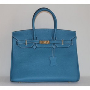 Hermes Birkin 35CM Tote Bag Blue Clemence Leather with Gold hardware