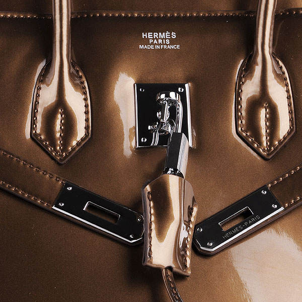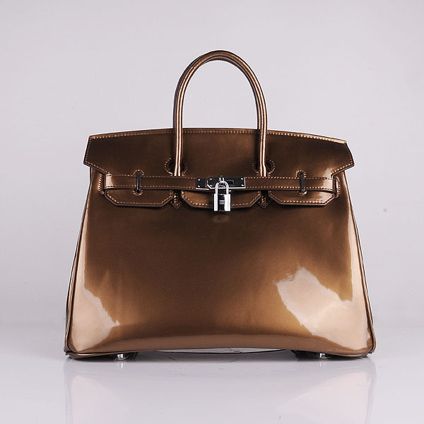 Hermes Birkin 35CM Tote Bag Bronze Patent Leather H35 Silver hardware