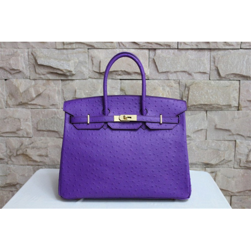 Hermes Birkin 35CM Tote Bag Ostrich Leather Purple with Gold hardware