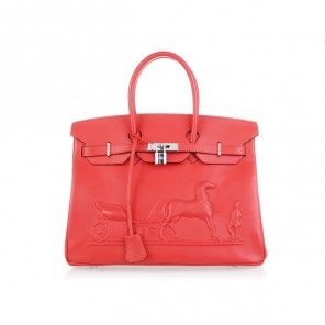 Hermes Birkin 35CM with Embossed logo Handbag Watermelon Red H35 Come with Hermes authenticity card, Hermes tags,Hermes dust bag and Hermes care booklet