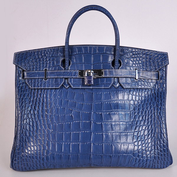 - Hermes Birkin 40CM Crocodile stripes leather in Blue with Silver hardware