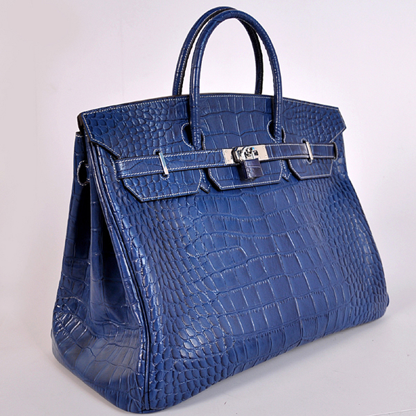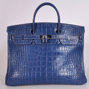 Hermes Birkin 40CM Crocodile stripes leather in Blue with Silver hardware