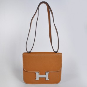 - Hermes Constance Bag clemence leather in Camel with Silver hardware