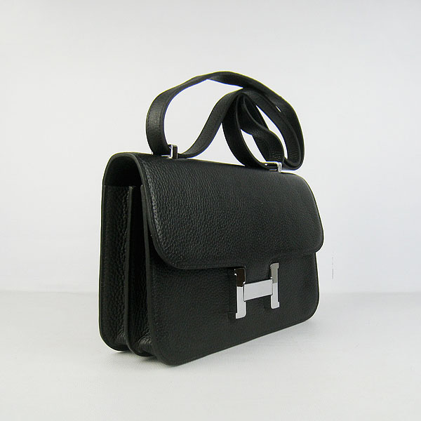 Hermes Constance Togo Leather Single Bag Black Silver Hardware H020