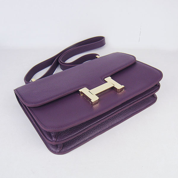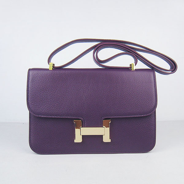 Hermes Constance Togo Leather Single Bag Purple Gold Hardware H020