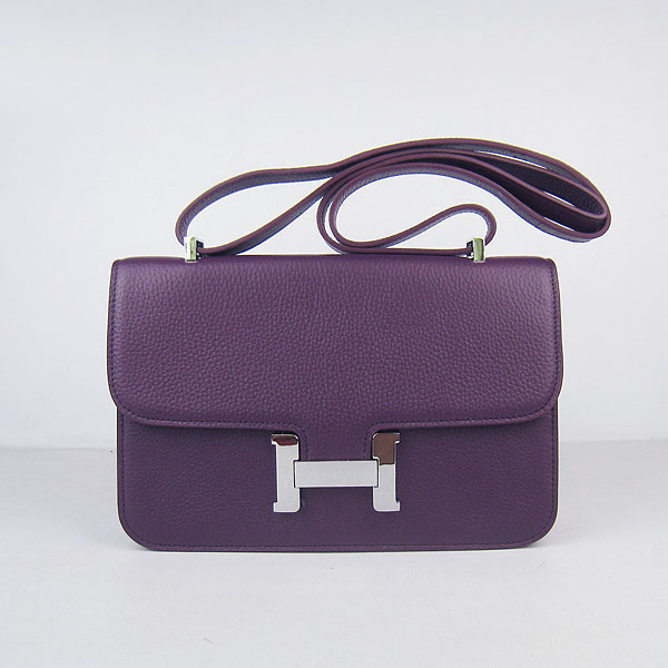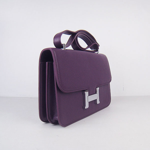 Hermes Constance Togo Leather Single Bag Purple Silver Hardware H020