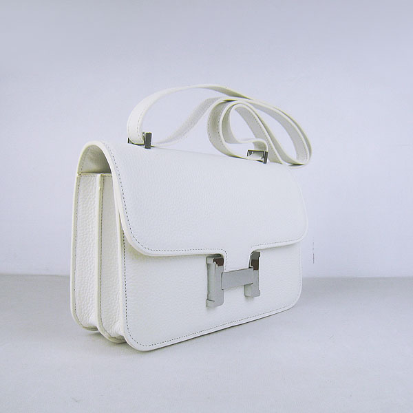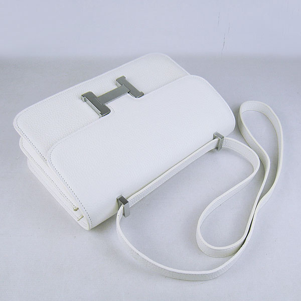 Hermes Constance Togo Leather Single Bag White Silver Hardware H020