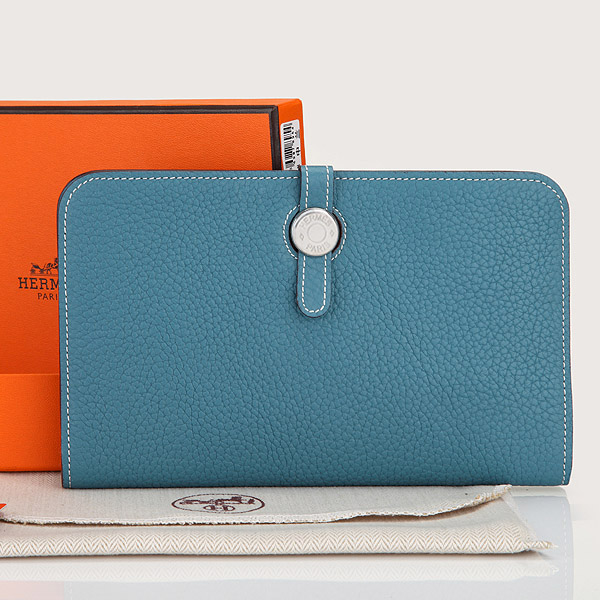 Hermes Dogon Combined Wallet Original Clemence leather A508 Medium Blue