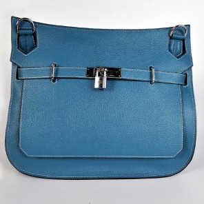 Hermes Jypsiere Bag 34cm togo leather in Medium Blue with Silver hardware