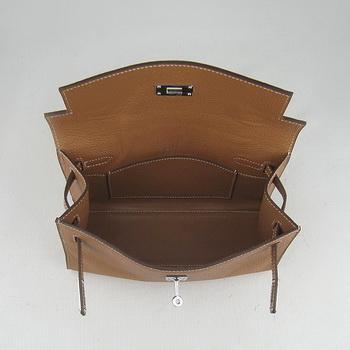 - Hermes Kelly 22CM Cattle Neck Stripe Light Coffee