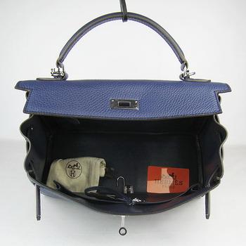 - Hermes Kelly Handbags 32CM Dark Blue(silver)