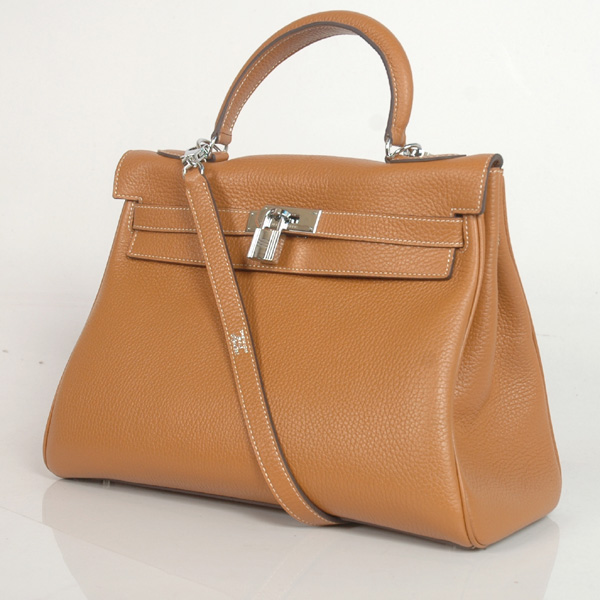 - Hermes Kelly 32CM clemence leather in Camel with Silver hardware