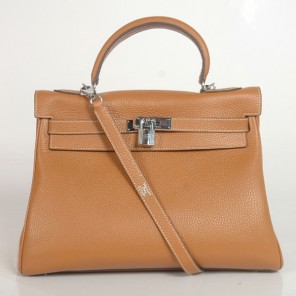 Hermes Kelly 32CM clemence leather in Camel with Silver hardware Come with Hermes authenticity card, Hermes tags,Hermes dust bag and Hermes care booklet