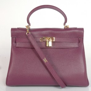 - Hermes Kelly 32CM clemence leather in Purple with Gold hardware