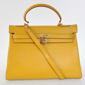 - Hermes Kelly 32CM clemence leather in Yellow with Gold hardware