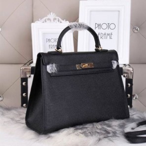 Hermes Kelly 32cm Shoulder Bags Grained Leather Black